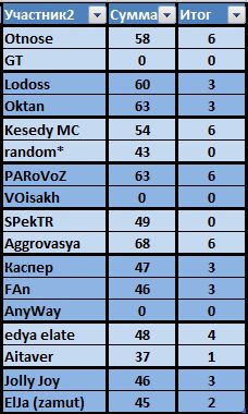 В итоге мы имеем 6 человек, которые за 10-11 месяцев (со времени окончания третьего раунда 6го сезона) улучшили своё мастерство владения речитатива и стихосложения.