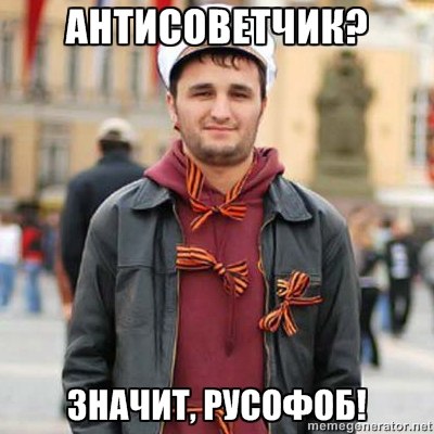 обиженные чтоли чем? хуй знает.  ты похоже читаешь както выборочно. я наоборот с первых страниц говорил что и те и те хороши, и никто из них на нимб святости не претендует, в то время как риф утверждал что белая гвардия чуть ли не сверхчеловеки по ницше с чем я никак не согласен. а в голове у тебя реально хуй пойми что раз ты делаешь такие выводы. а тип этот на картинке с георгиевскими лентами просто пидорас.