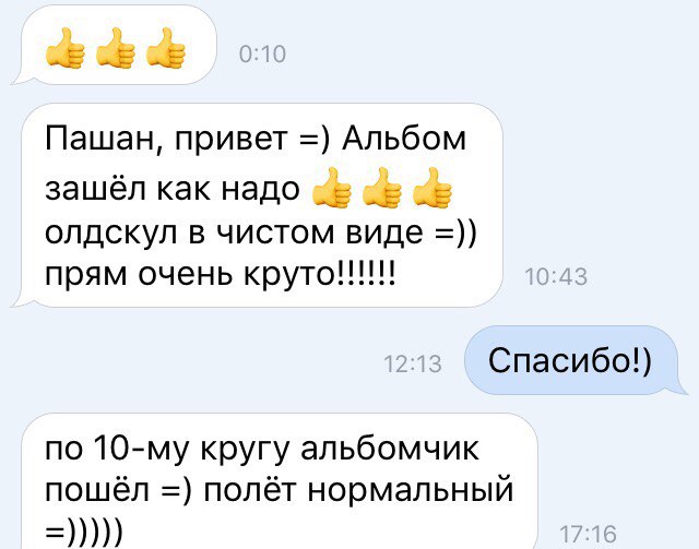 "я так счастлив, что некоторые уже смогли послушать этот долгожданный альбом! когда он выйдет, я обязательно его послушаю тоже! костя, а ты послушаешь?" альбом то вышел, это просто ты не послушал его и много кто еще. можно не обсуждать, никто об этом речь не ведет. когда появится рип в сети или тунец, тогда и вышел. нахуй тогда тема нужна без ссылки? 2018 год как никк, а не 2003. В моргауши нет таких понятий.  | | | | | | в Бане