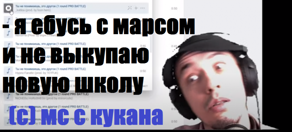 у тебя есть фит с петриком путяхой, а ты проигнорировал хайповый проект. не верю. петрик путяха вообще зарождал дерти саус стиль в атланте. зачем ты делаешь вид, что тебе лень и неинтересно, если ты уже хайповый. посмотри на моргенштерна, посмотри на славу кпсс, который дисил шнурова, а потом самобадибэкнулся. ты туда идешь, к этим ноунеймам. Мне кажется, что это всё из-за солей Добавлено через 1 минуту 7 секунд мц говно, если нужна помощь - пиши, я всегда помогу, знай, я твой самый лучший друг на форуме | МАТЬ ЕБИ СОЛИ НЕ ТРОЖ! Добавлено через 1 минуту 1 секунду Цитата: