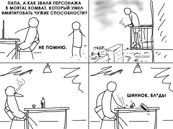 Регистрация: 17.01.2012 Откуда: Скайрим | -Цитата от Akim -Цитата от baTtuhA до mkx шан цунг же имитировал. ну тут в оригинале этого комикса отец в конце всегда кричит "Щенок, блять!", а тут как бы сделали похоже "Шиннок, блять!" так что дело не в Шан Цунге | | | | Дружелюбный грамотей