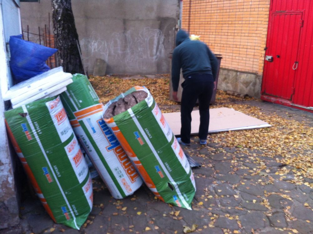 Начинаю обустраивать помещение.  гаражец?) Нет. Это выгружали у ворот)))