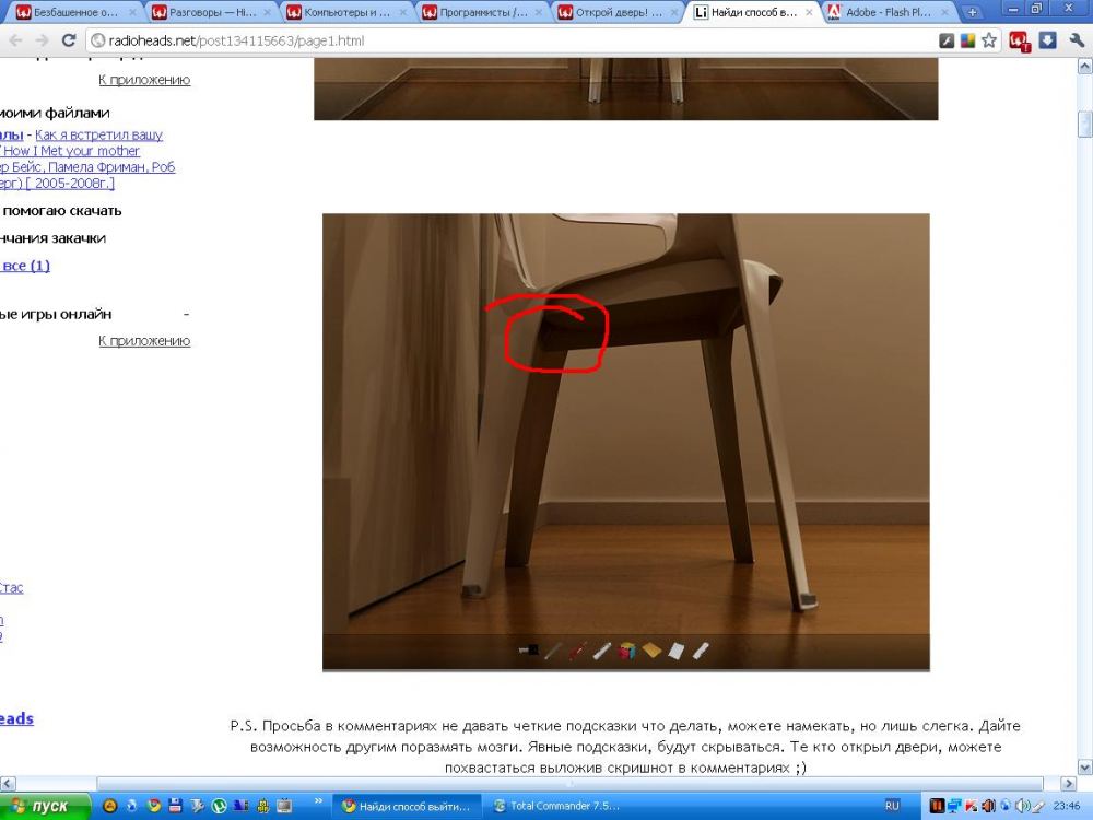 Регистрация: 07.06.2007 | -Цитата от IIIAJIyH -Цитата от Jеss тут ключ что ль торчит от ящика, что в чемодане? не пойму, темно ага -Цитата от Shu Ga розетку вскрыла, эх, блять, чувствую надолго это как разбила?) -Цитата от Jеss в стене что ль? или на полу? я нихуя не наблюдаю никаких слитков тут сейф появится когда картина с человеком отодвинется давно уже сейф появился и картина с человеком над сейфом, только вот между ними нихуя нет. а как вынуть этот ключ из под стула? открывалкой от ножа? | | | | | | _______________