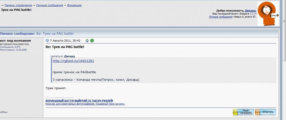 Скидывал вот этому типу, в личку! Он ответил что трек принят!
