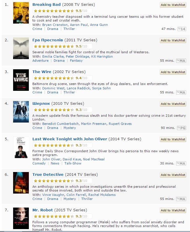 Регистрация: 10.08.2007 Откуда: State department | хуй знает, что за фича такая на имдб - по моему айпишнику видать перевели название GoT на соловьиную  | | | | | | ты знаешь