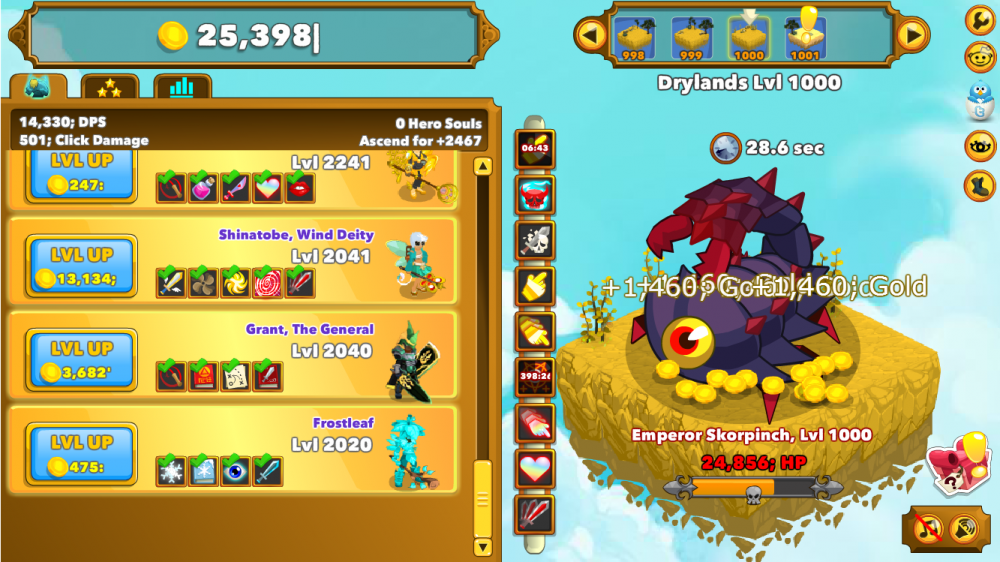 Уровня с 140 еще нужно начинать прокачивать treebeast к тысячному уровню, он потом станет сильнее последнего героя
