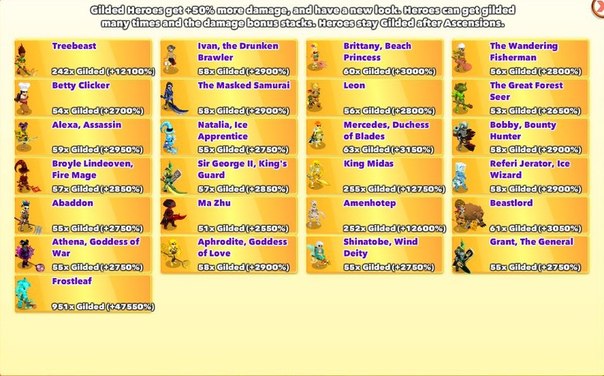 | Аменхотеп и мидас одни из самых бесполезных героев в лейте.Вообще эффективность можно и самому посчитать, просто сложив скиллы героев, которые усиливают их личный дпс на 100% или 150%.