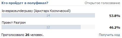 вы бы начинали там уже комментарии как в прошлом раунде свои говенные, интересно жеж (шутка-минутка) таурина уже откоментили, выделю пиротехника его инопланетный санскрит нихуёво так качнул все остальные работы в плане раскрытия темы  | | | | | | новый пользователь