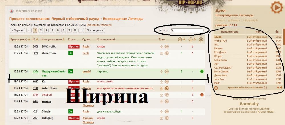Все-таки не хорошо это, если для прохода в 3 раунд будет голосование. было бы такое в восьмом батоле, например, не факт, что мы бы видели того ДЖ в победителях. Особенно демонстративны темы с его треками, где до 3 раунда по 2 ответа. Так бы он и слетел во втором с 2 плюсиками на предпоследнем месте. =( |