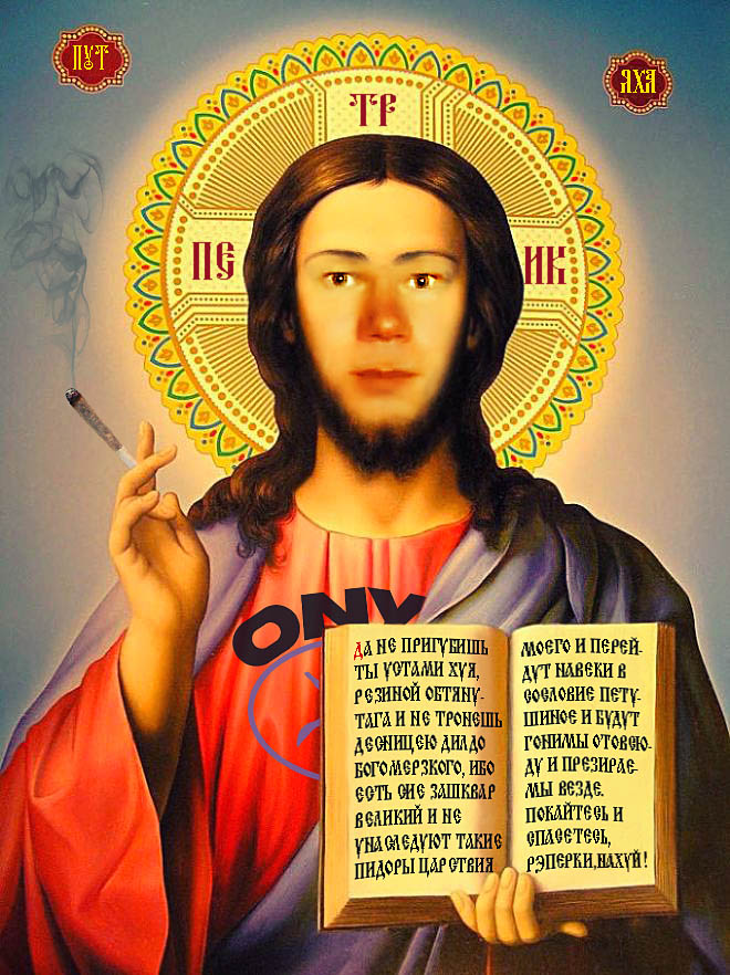 Оскорбление чувств верующих  А вот хуй. Я адепт церкви Святаго Проповедника Петрика Путяхи и он благословил меня на богомазание по скайпу. Мне похуй чувства каких то там верующих от слова "вообще".  Нынешние христиане оскорбляют мои чувства вообще одним своим существованием и чё ? Я же их по судам не таскаю за их мракобесие ебучее. | | | | активный пользователь