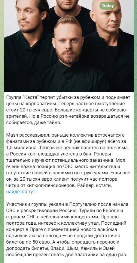 Регистрация: 15.01.2005 | Сколько там например у Хамиля вылетает в год, даже если в РФ, ну допустим 15 концертов по 350 тысяч, это можно отложить 5 лямов, на остальное скромно жить + доходы с альбомов и в год покупать по квартире где нибудь в миллионнике, за 5 лет можно было втарить пять квартир и сдавать их по 25 тысяч, ну и на соточку жить конечно не в Португалии, но в том же Таиланде или Вьетнаме, или даже в Сербии, периодически лутая с музыкальных платформ бабки, плюс можно еще рекламные посты брать и фиты за бабки иногда, ну и потихонечку и помаленечку, даже если концертов не будет нормально существовать. Это если такие принципиальные, а так в данной ситуации жопа в мыле, дети растут, уже и в букмекерских рекламах приходится сниматься, пока хоть чето капает надо хоть курсы пройти по АЙТИ и вкатиться  | | | | | | активный пользователь