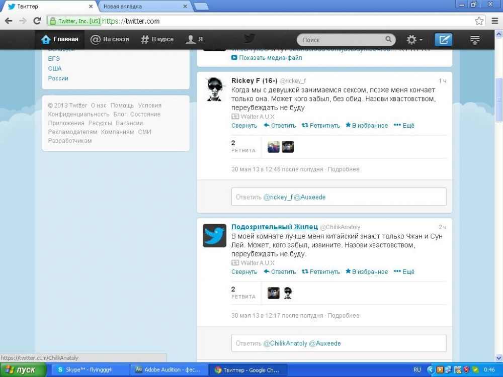 да какой нафиг троллинг, если он сам же назвал свой текст "ультима туле" величайшим. | ГДе такое? В первом посте написана величайшая НАстя и величайший АНдропов.И написано просто тектс куплета =/ | отвечал уж) сколько можно повторять? я не имею претензий к творчеству. мне лишь неприятен апломб, с которым он заявляет, ладно - намекает, что мы все не догоняем, не выкупаем и тем более не сможем никогда воспроизвести что-то подобное, ладно, даже не мы, никто! все остальное меня не касается и, как следствие, не волнует |