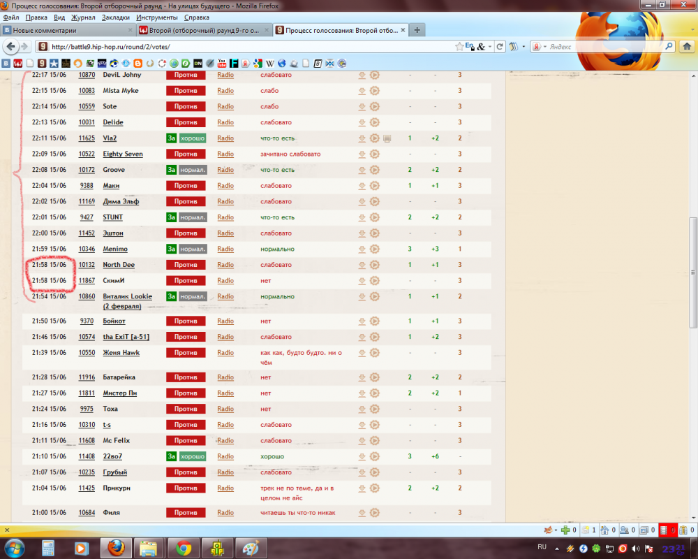 Даже скрины выкладывали, как выглядит интерфейс судей, там видно, что можно послушать несколько треков, поставить им оценки, написать подробные комментарии и потом просто нажимать добавить или в этом роде... вон грузило мог до десяти треков в минуту отсудить, и его с этим вопросом порядком заебывали... |