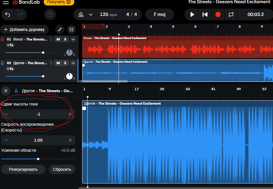 Бэндлэб работает? https://www.bandlab.com/revisions/cd41d55b-3b8f-f011-b48...1-BXW67ASg Добавлено через 8 минут 15 секунд Едем дальше... - 4 полутона  и О ЧУДО всё звучит https://www.bandlab.com/revisions/a69ff063-3c8f-f011-b48...8xFF5pWYUQ | | | | | | уёбок