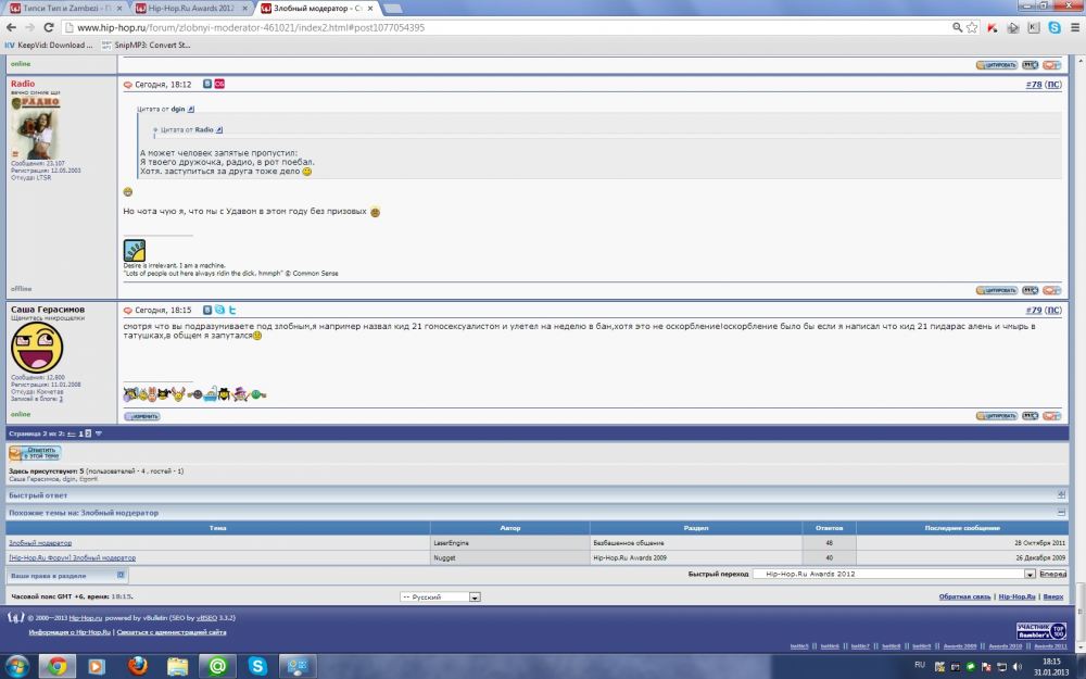 хватит мне вабаджеков всяких приписывать, не я распутал то дельце, угомонись уже, мамбетик Добавлено через 23 минуты 33 секунды -Цитата от Дельфин тут столько фактов мне кажется что уже пора банить kid21  перечитай последний скриншот из поста своего сексуального партнера Герасимова и зззделай это! Твое чувство юмора в стадии зачатия | | | | | |